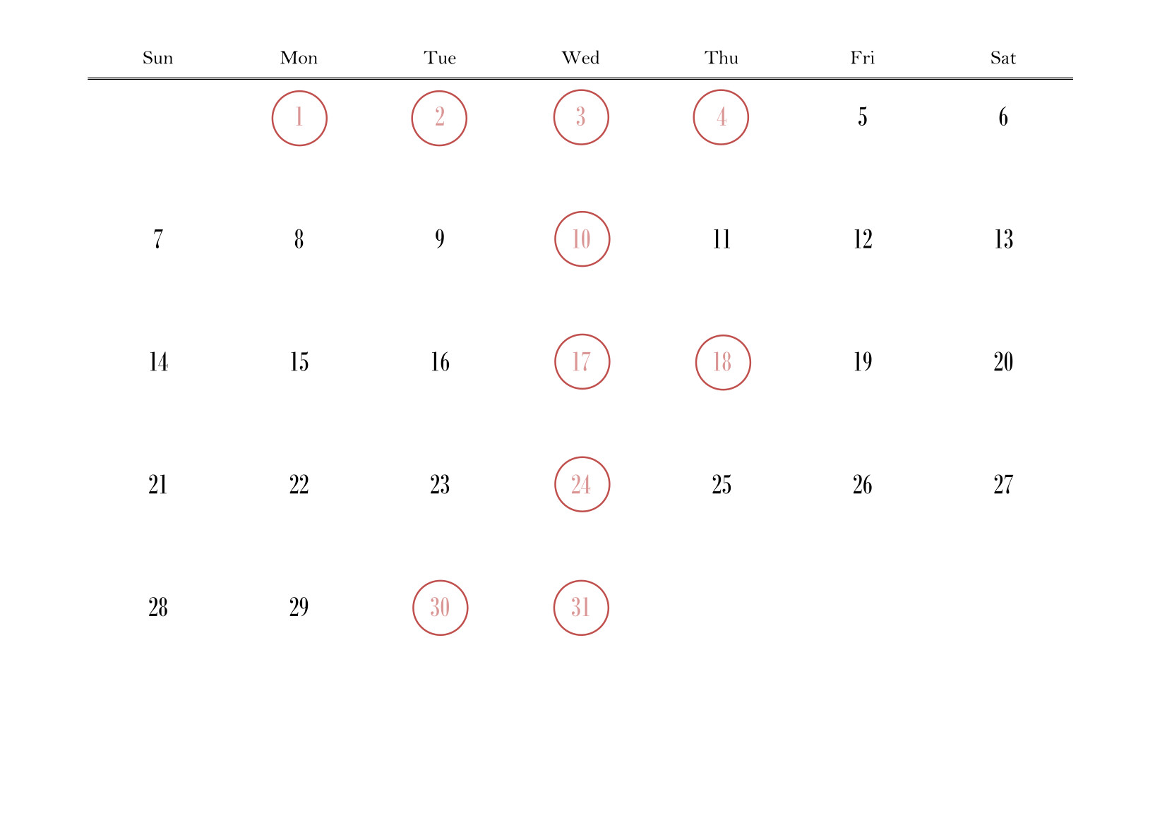 Closed / Every Wednesday, 1st & 3rd Thursday